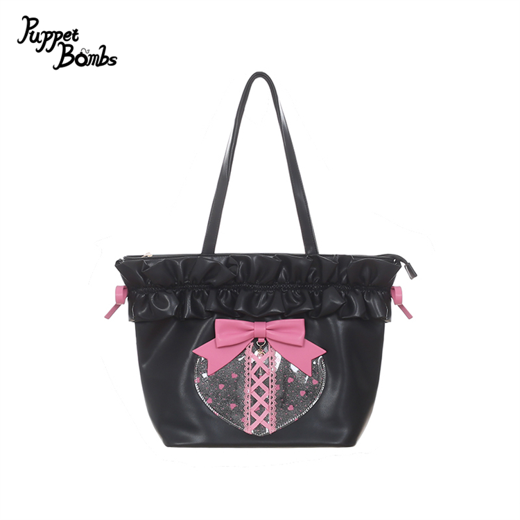 ハートのクリアポケットが可愛いフリルデザインのトートバッグ。