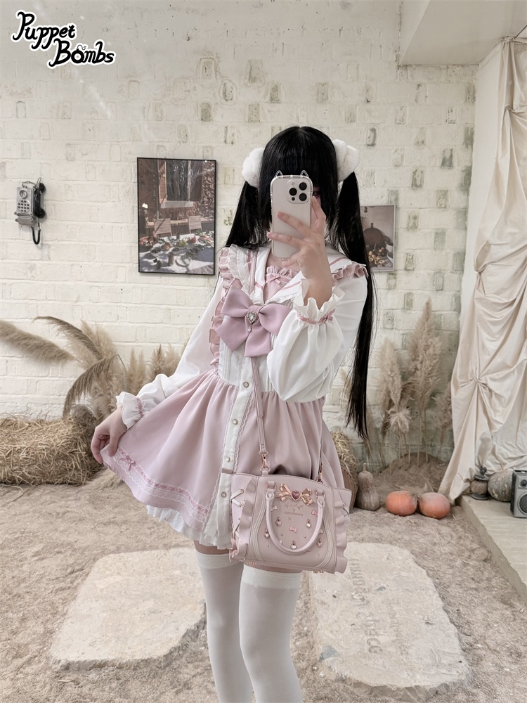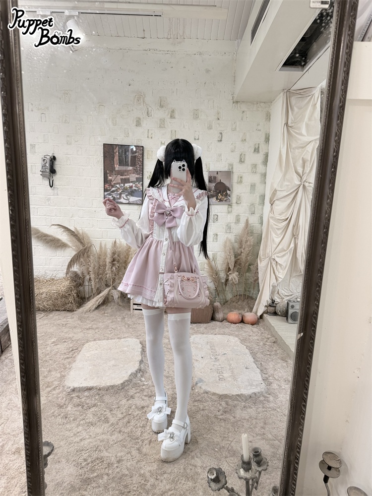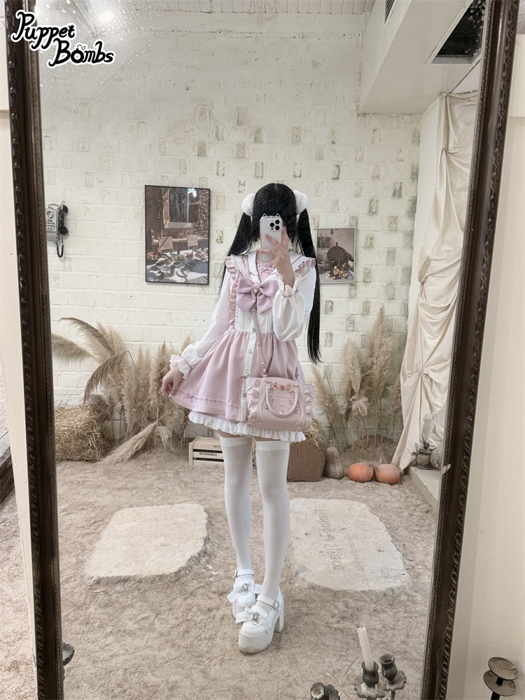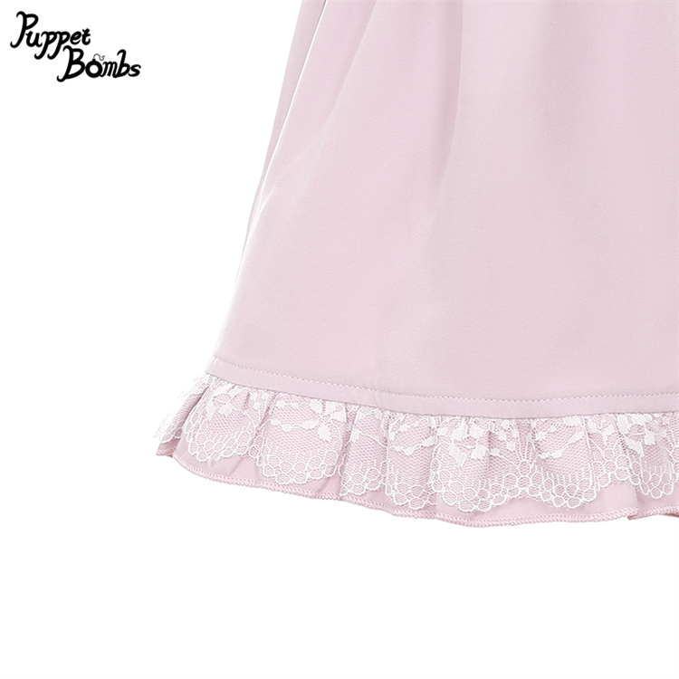 はしごレースを使ったラブリーなピンクのセットアップ。