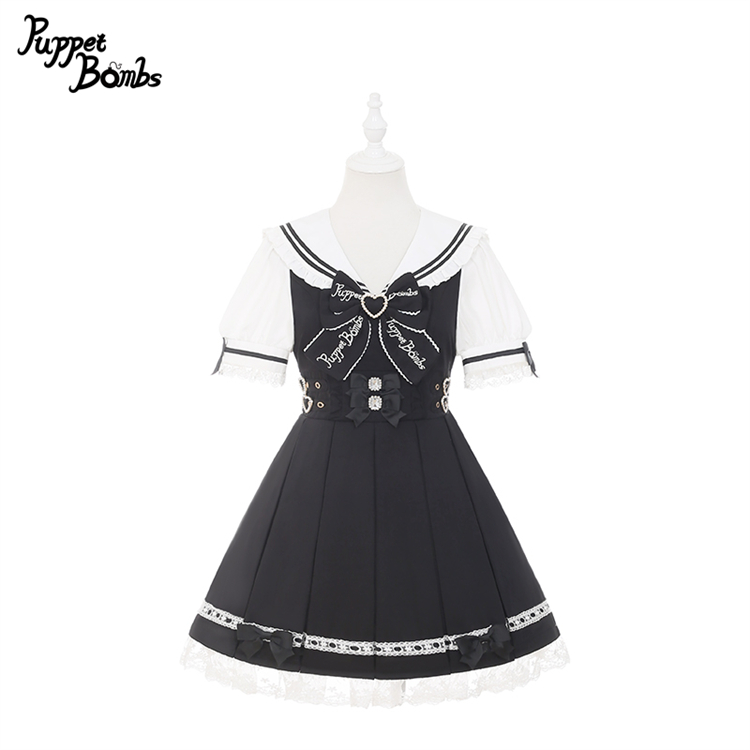 【Q417 Q435】 レイヤード風セーラーはしごレースワンピース [Q417 Q435]