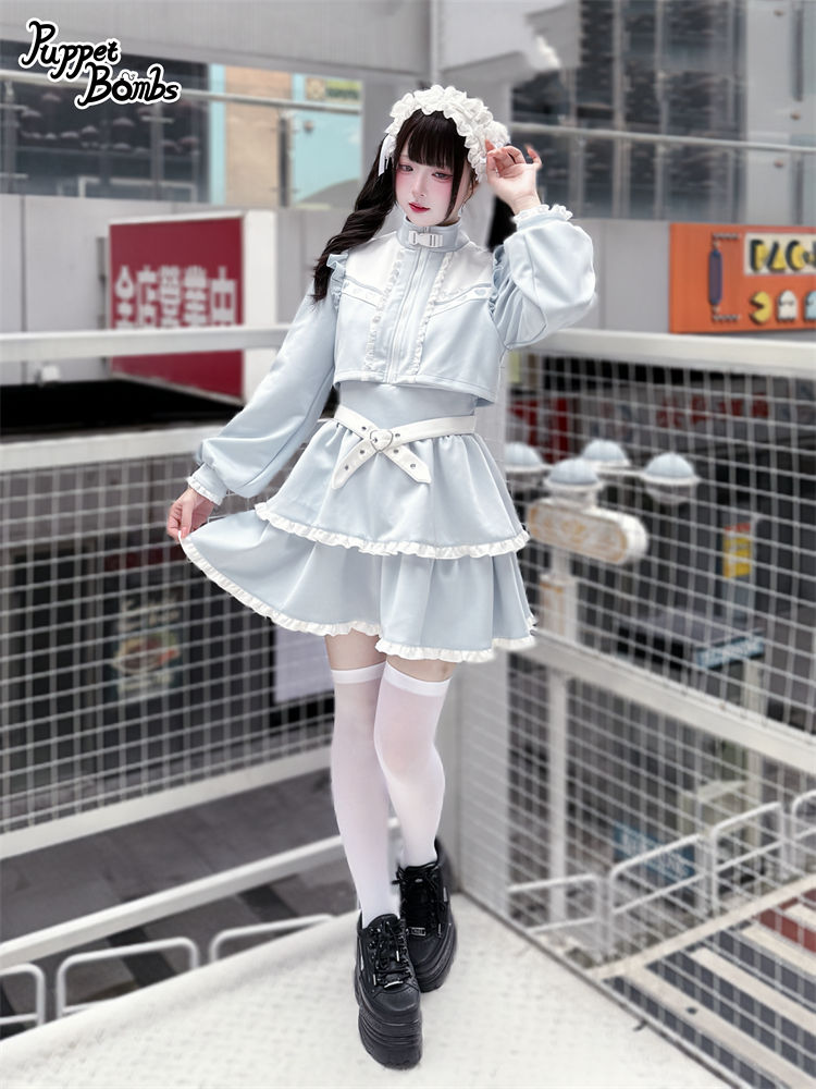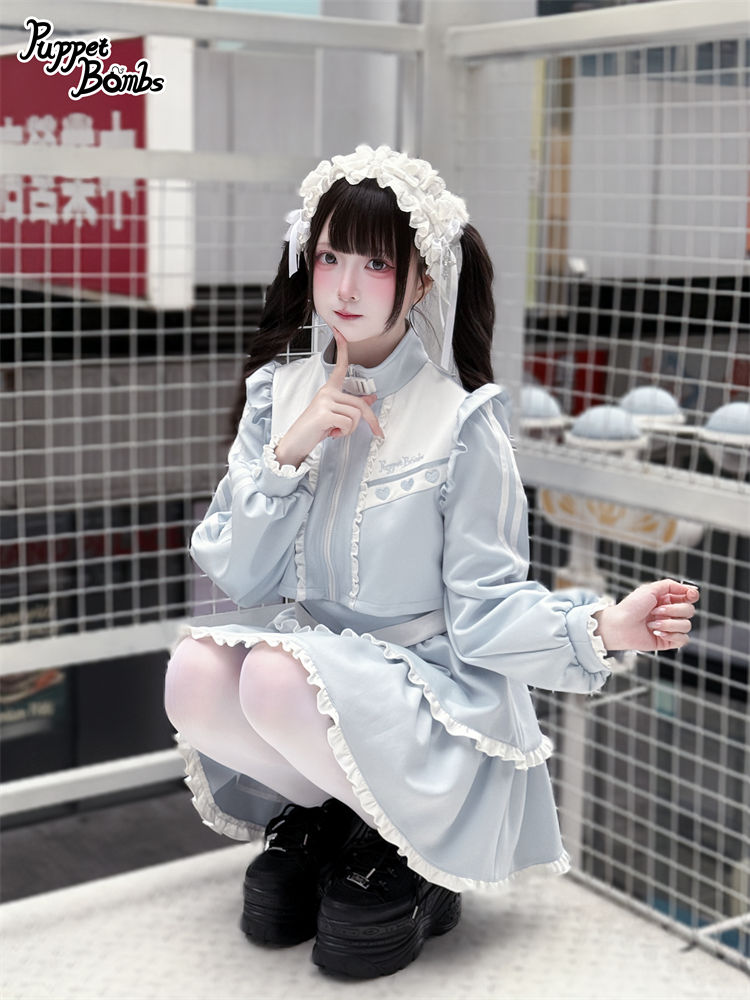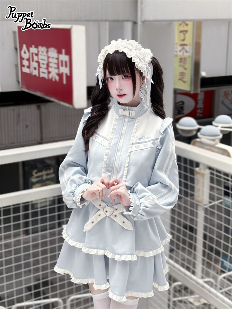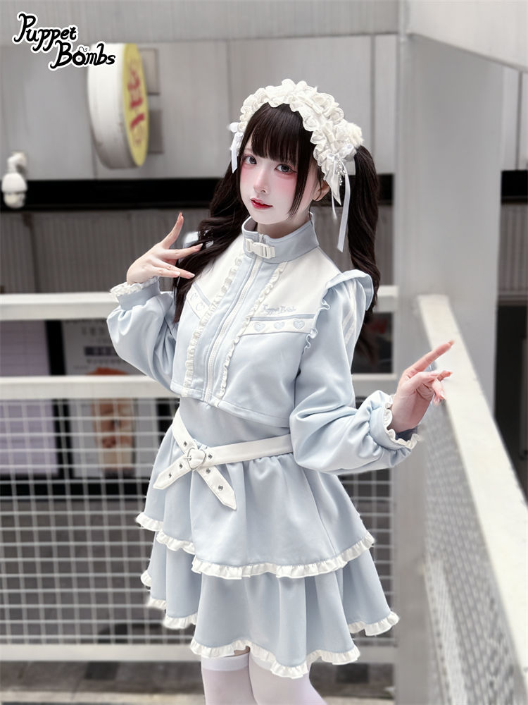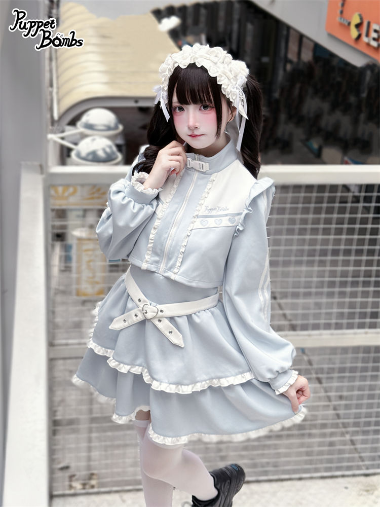 【Q467】 レイヤード風フリルジャージワンピース [Q467]