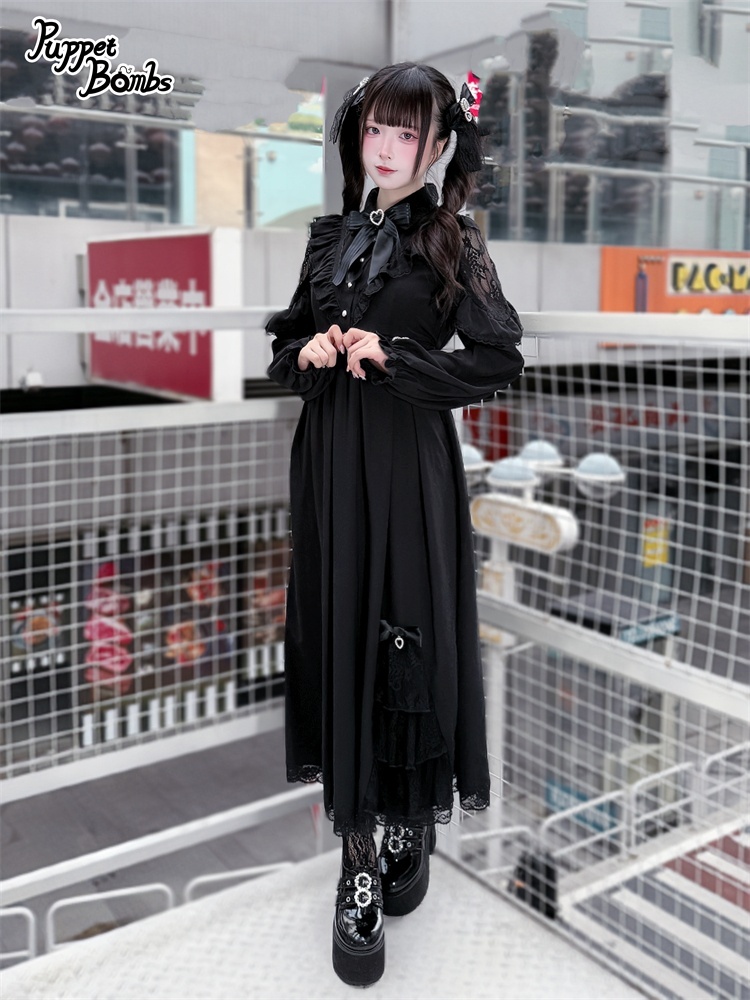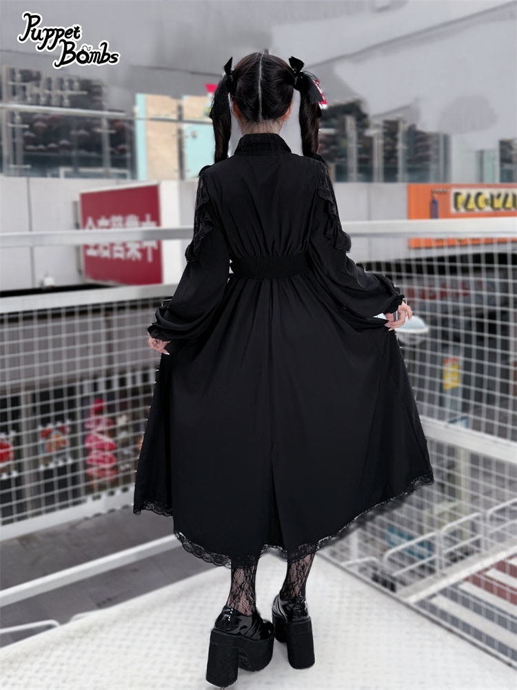 【送料無料】Q502 シフォン長袖ロングワンピース《予約受付》 [Q502]