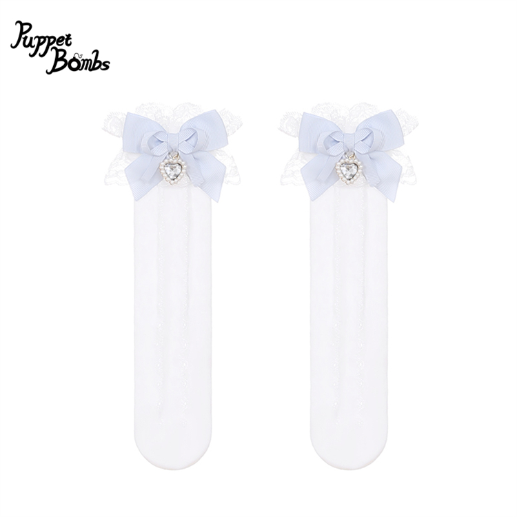 【送料無料】QS212 ハートビジュー付きリボンレースハイソックス《予約受付》【計5000円以上】 [QS212]